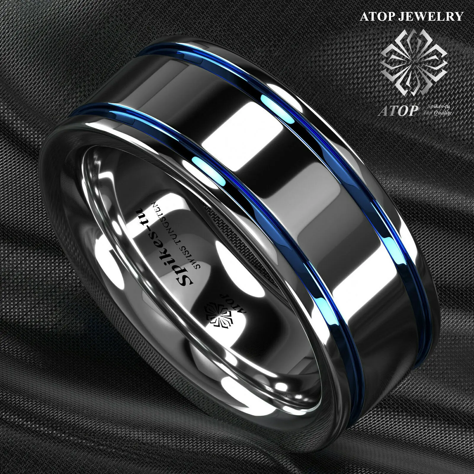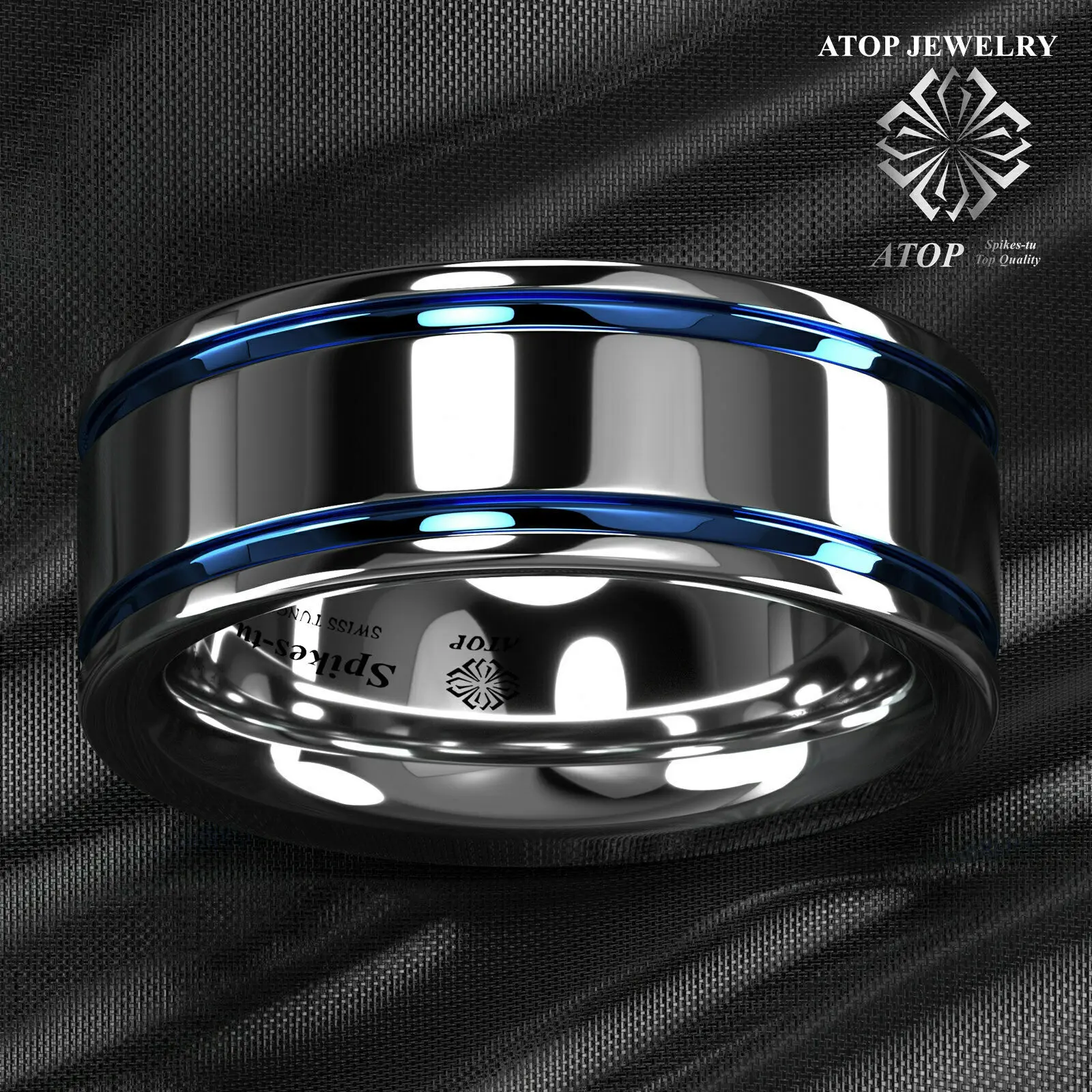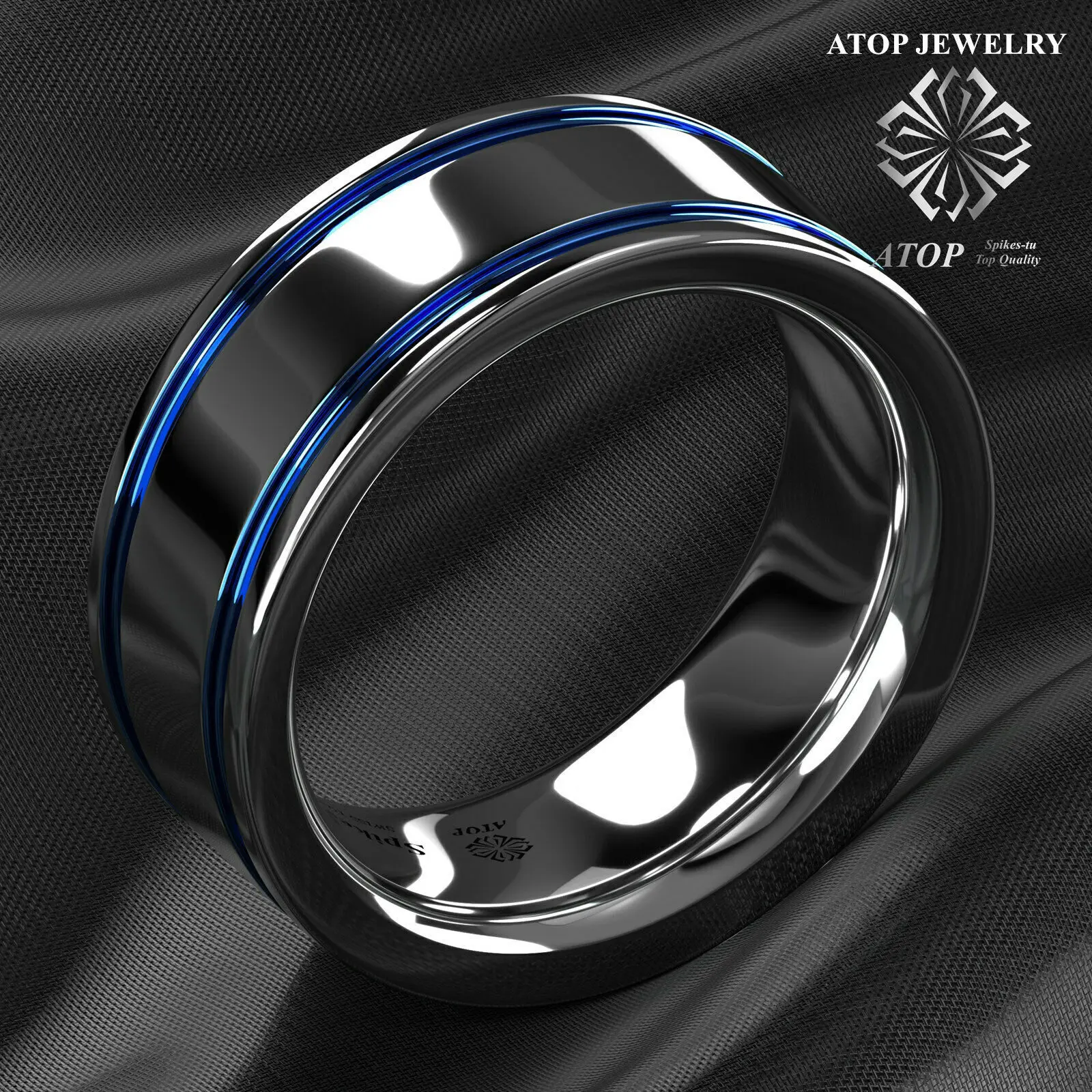 Мужское кольцо из карбида вольфрама 8 мм, обручальное кольцо с двумя синими полосками, удобное кольцо, бесплатная доставка