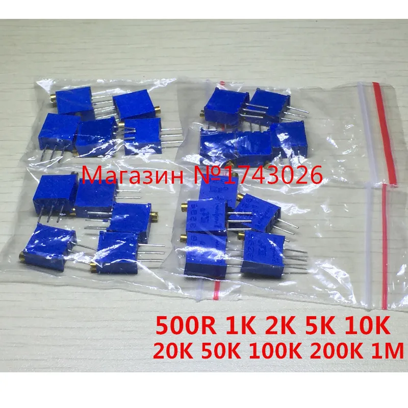 Набор потенциометров 3296 Вт многооборотный Подстроечный резистор, 20 шт., высокоточный переменный резистор 500R 1K 2K 5K 10K 20K 50K 100K 200K 1M ic...