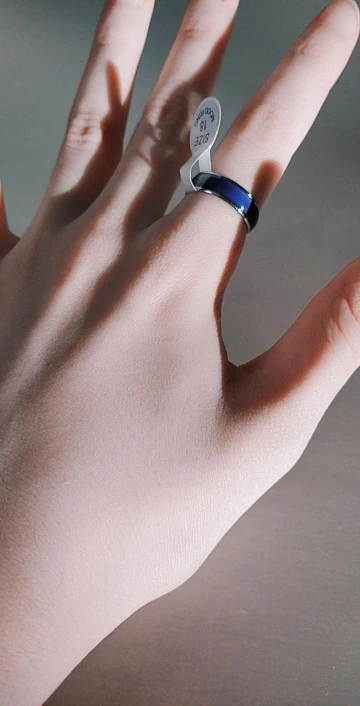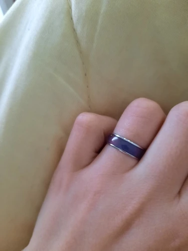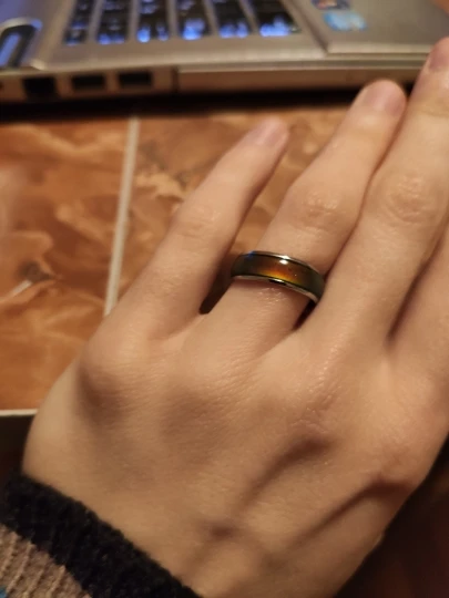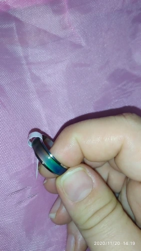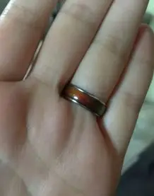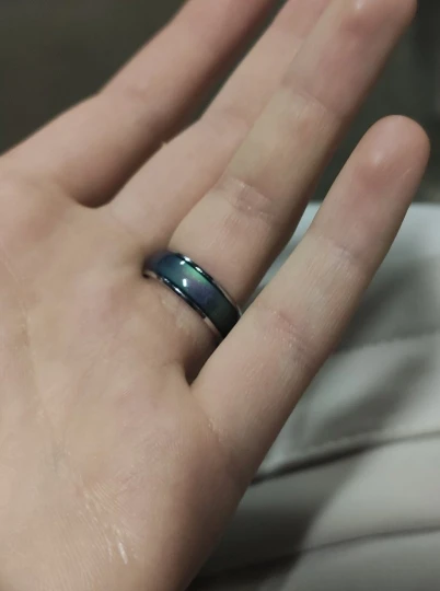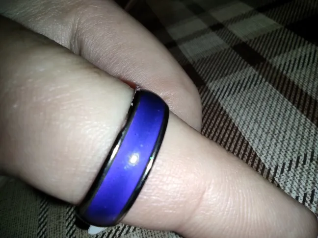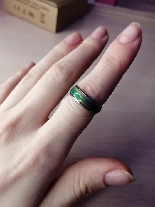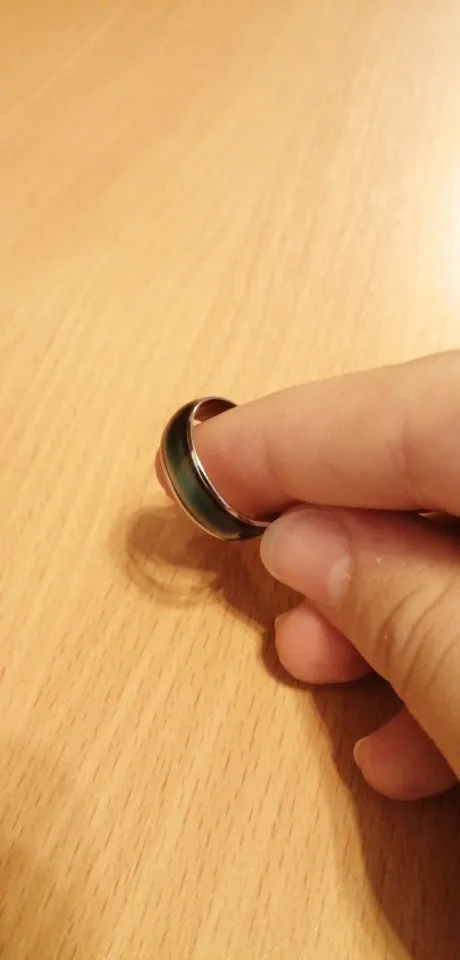 Довольно интересное кольцо, в зависимости от температуры тела меняет цвет, вот только с градацией продавца эмоции никак не вяжутся. Взял самый большой размер, который был в наличии (20) и не прогадал, подошло идеально (сам ношу 17,5). Само кольцо очень тонкое, но выглядит довольно стильно.