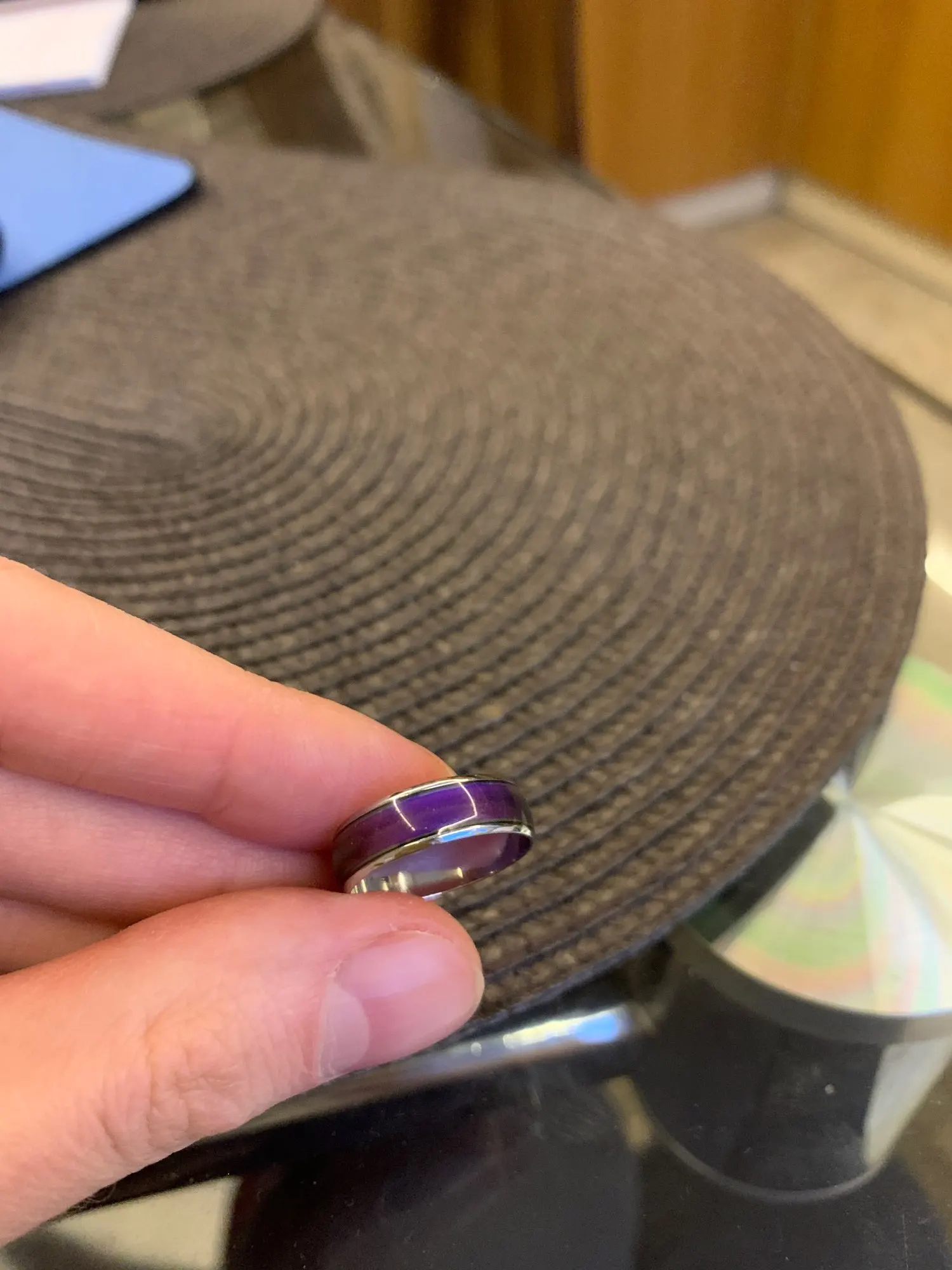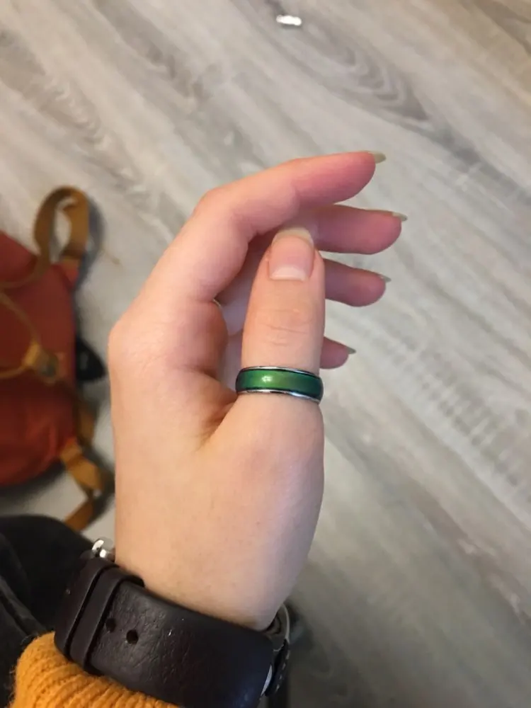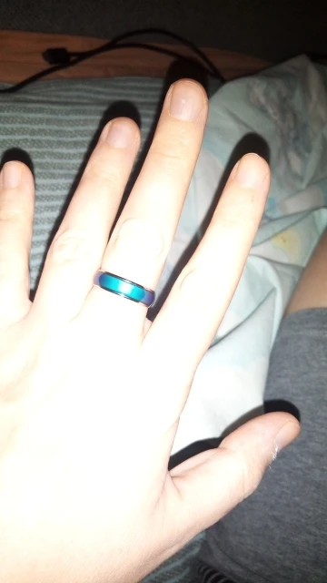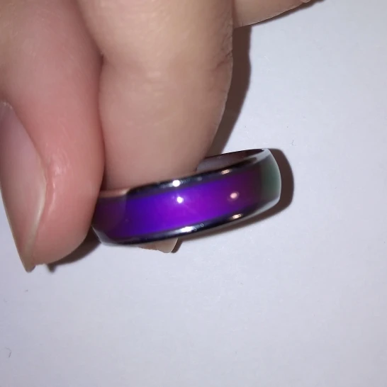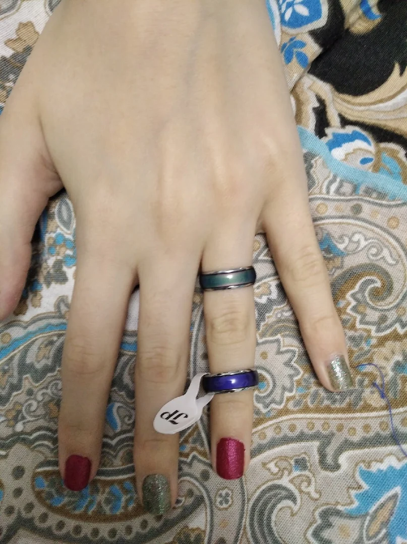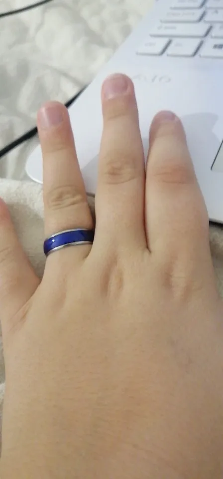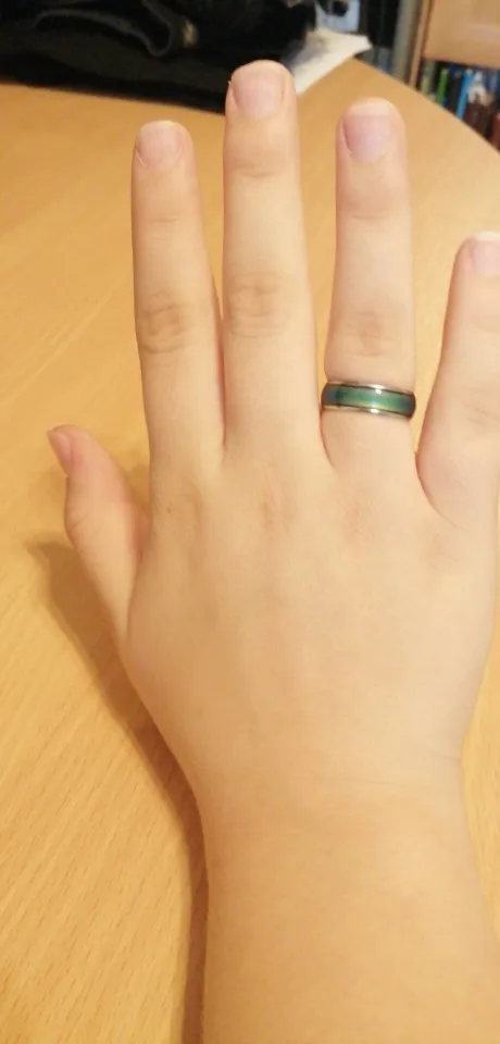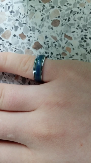 Кольцо шло около месяца, заказывала размер 18 рассчитывала на безымянный палец но подошёл только на средний :) ну да ладно. В целом кольцо неплохое и действительно меняет цвет от температуры.