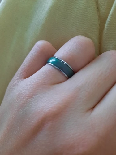 Красивое кольцо, просто шикарное! Уже который день хочу радостная, и парень заказала) Надеюсь, что с размером угадала. Мне было немного великовата. Ношу на указательном пальце и все хорошо. Продавца рекомендую, товар пришел быстро из-за того, что объединили посылки. Довольна и рекомендую к покупке. Но единственное, это не работает от настроения, ибо кажется мифом. Но зато от температуры меняется очень быстро, попробуйте подержать под теплой и холодной водичкой)