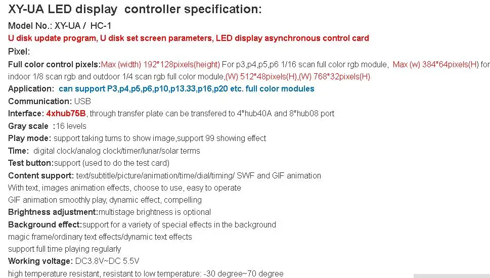 XY-UA HC-1 XINYI USB порт полный цвет светодиодный карта управления u-диск асинхронный Светодиодный дисплей плата контроллера с 4 * hub75b портом