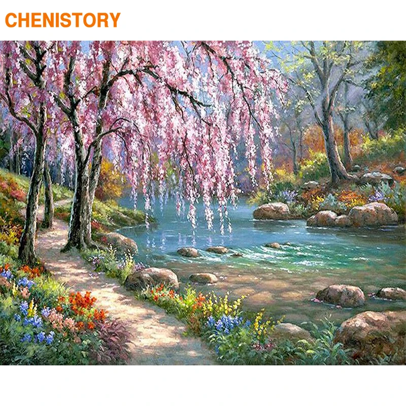 Картина маслом по номерам CHENISTORY сделай сам, набор для декора стен, пейзаж, Картина на холсте, ручная печать, картина 40 х50, поток дерева
