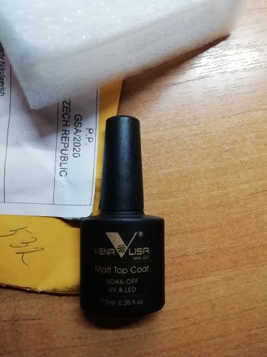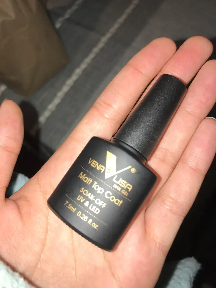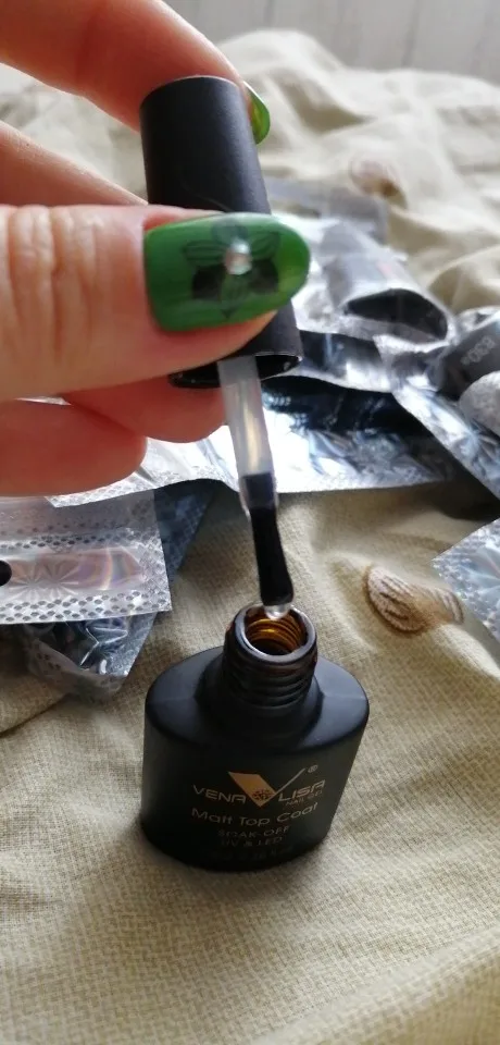 Рыбята! Топ просто отвал всего! Безупречное качество, держится отлично, наносится просто идеально! Консистенция супер, однородный и прозрачный. На фото, на типсе один цвет лака, но вы просто гляньте насколько слева матовый - матовый)) и как он "меняет" цвет лака своей матовостью. В общем я в восторге. Советую очень! и продавец молодец))