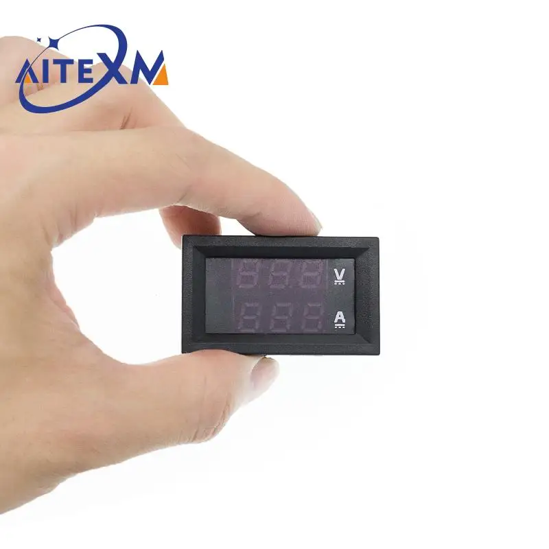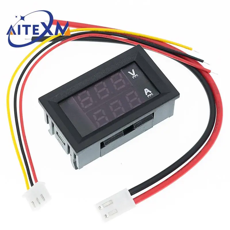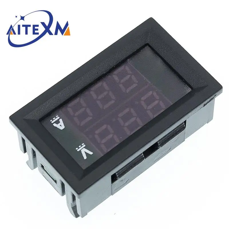 0-100 В постоянного тока, 10 А, цифровой вольтметр, амперметр, двойной дисплей, детектор напряжения, панель измерителя тока А, вольтметр 0,28 дюйма, красный, синий светодиод