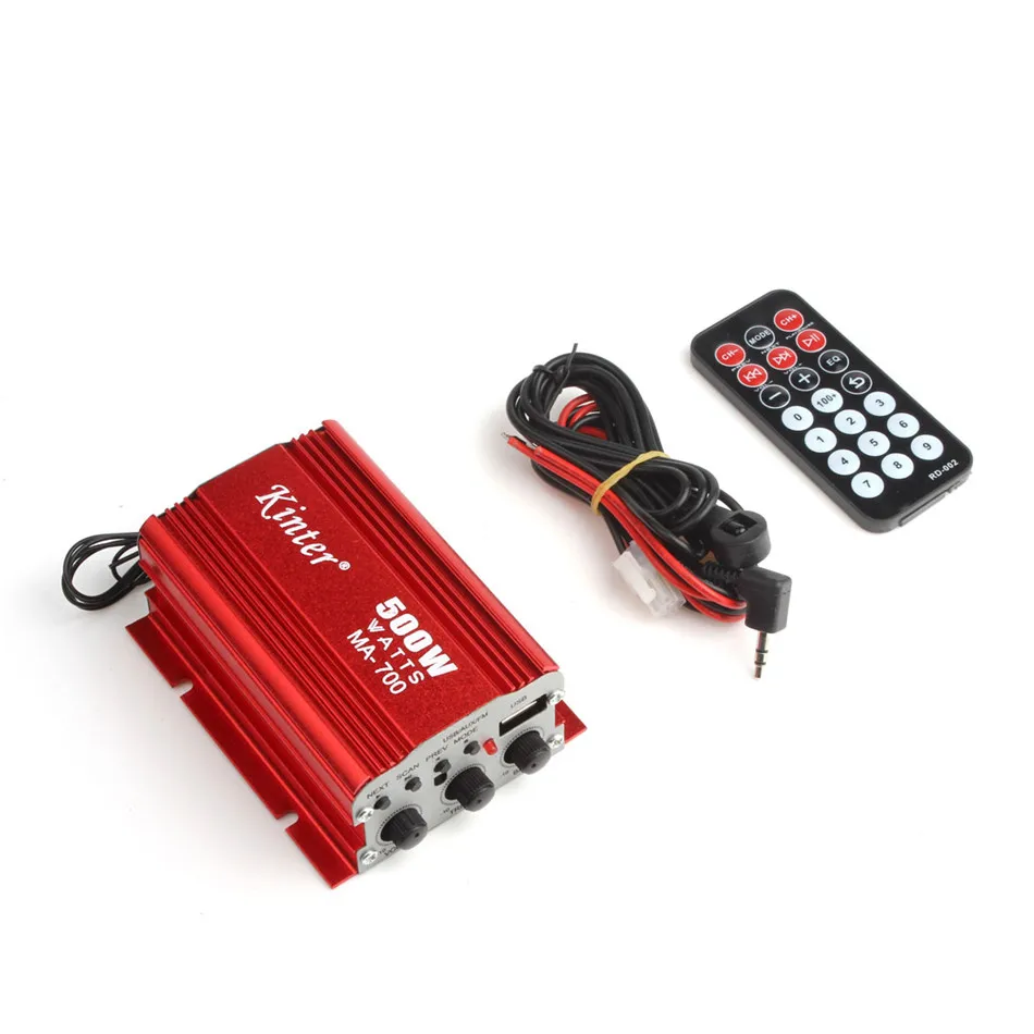 Особенности:-2 канала мини усилитель, 1 Основные каналы и 1 объемный выходной канал.-Этот товар поддерживает MP3 музыкальный формат, u-диск и fm-стерео радио.-Фильтрация и защита от мощности.-Интегральные схемы, минимальное искажение и сильная мощность.-Идеально подходит для вашего автомобиля, мотоцикла, лодки и т. д.-Компактный и эффективный, идеально подходит для обработки ваших аудио требований в стиле.
