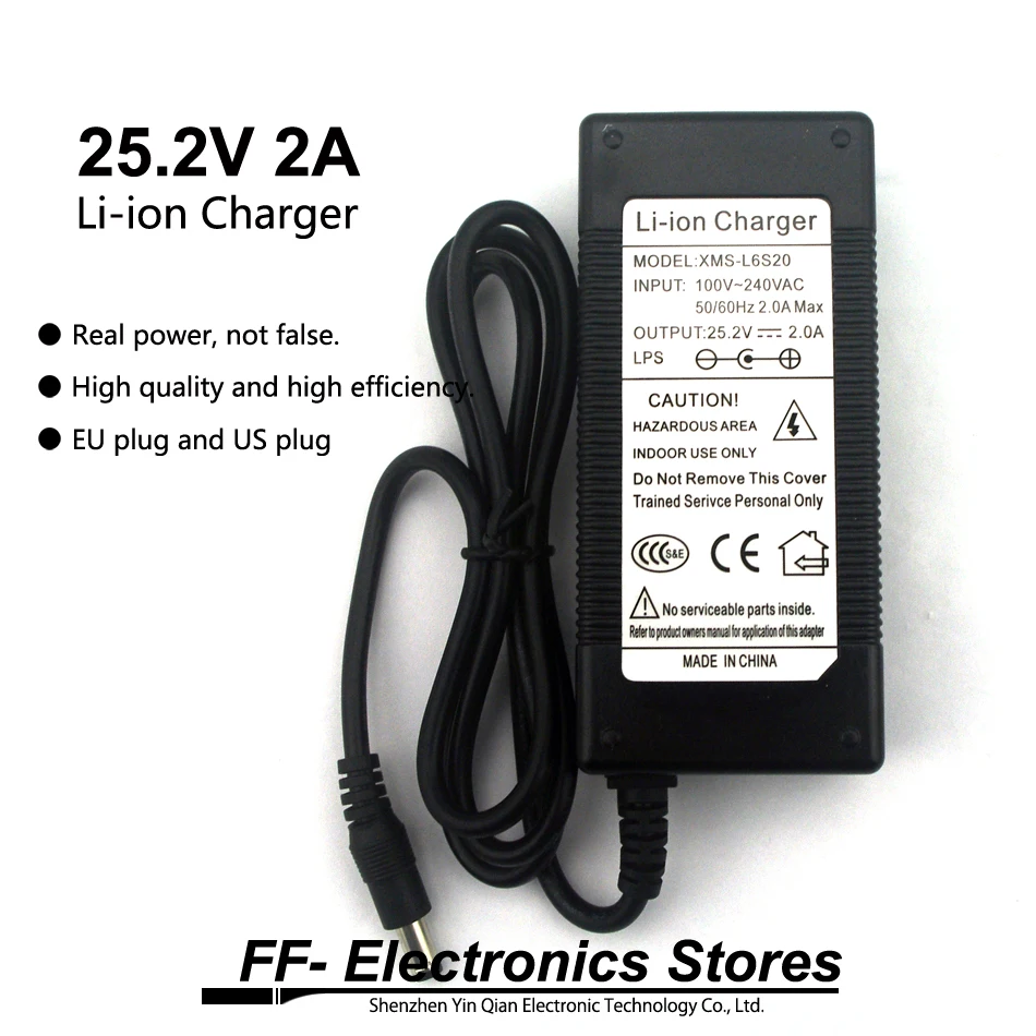 Зарядное устройство 24 В, 25,2 в, 2 А, 18650, зарядное устройство для литиевого аккумулятора постоянного тока 5,5*2,1 мм + бесплатная доставка