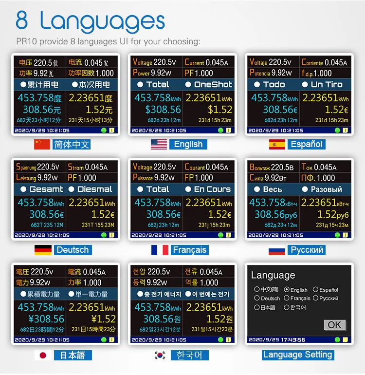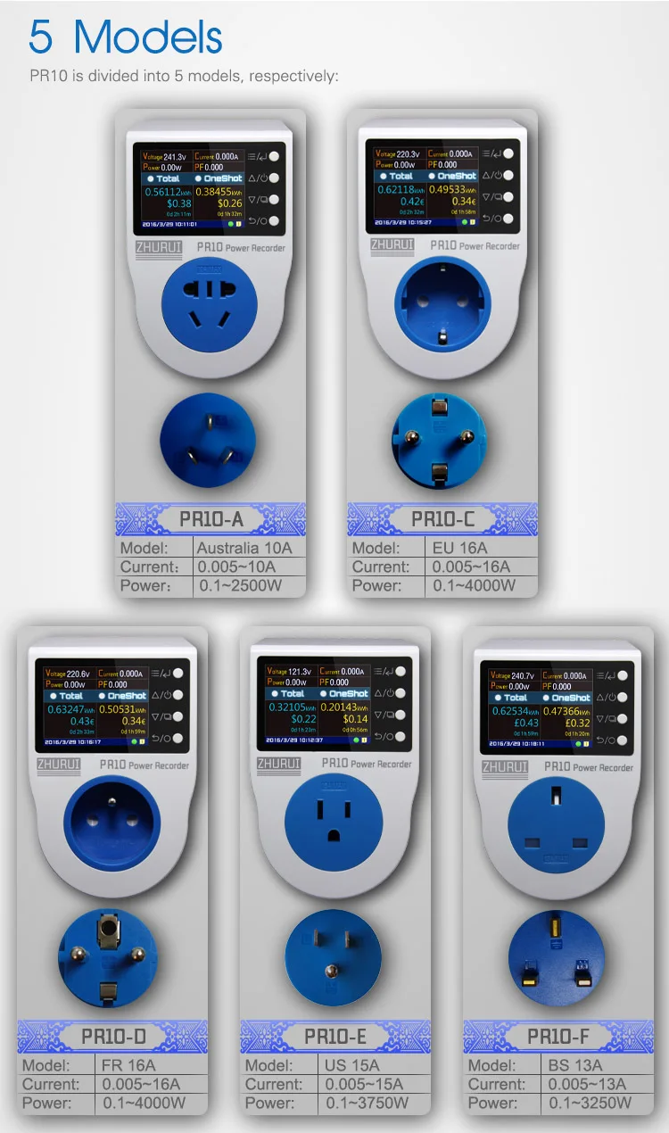 ZHURUI PR10 EU16AUS15ABS13AFR16AAU10A штепсельная вилкаизмеритель мощностиваттный измерительгнездоизмеритель энергииизмеритель электричестваизмеритель мощности