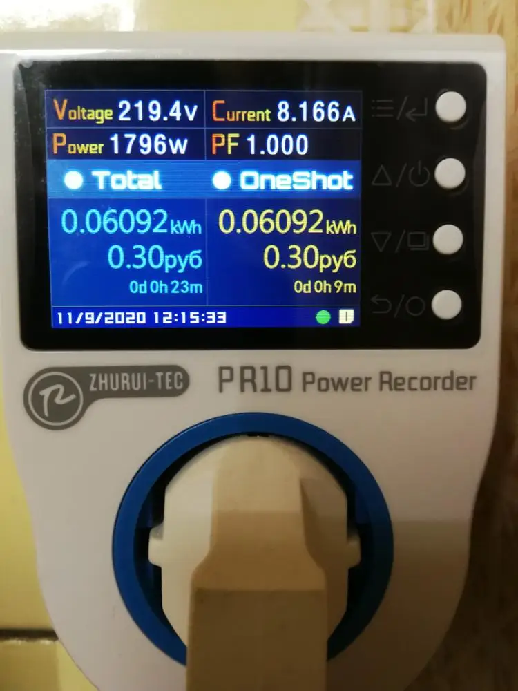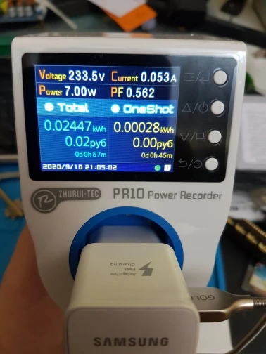 Обработка заказа очень быстрая 1 день. Доставка из Китая 5 дней! Новый рекорд. Трек отслеживался. Упаковано хорошо, всё цело. Качество хорошее. Кнопки без западения и ложного срабатывания. Точность очень высокая. Возможности по управлению питанием и замерами широчайшие! Цветной дисплей очень информативен. В режиме ожидания потребляет 1,85 Вт с включенным дисплеем (1,41 Вт с выключенным дисплеем). При непрерывной работе 1015 Вт в месяц. Весьма приемлемо. Покупаю второй прибор. Ранее купленный имеет дисплей чуть ярче и чуть большее собственное потребление электроэнергии. Разница по напряжению в десятых долях вольта. Хороший обзор этого прибора здесь (в поиск) "Многофункциональный измеритель мощности Zhurui PR10-C" Продавца рекомендую! Хорошего ему бизнеса!