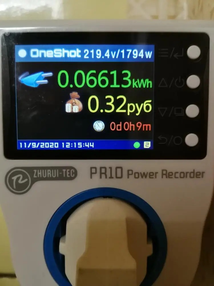 Получил быстро, курьерская доставка. Упаковка в норме. Включил - работает. Меню обширное, всё сразу не настраивал. Подключил кофемашину, показал сколько в режиме ожидания кушает, при приготовлении кофе. Можно установить стоимость кВт. Надеюсь свои задачи будет выполнять исправно.