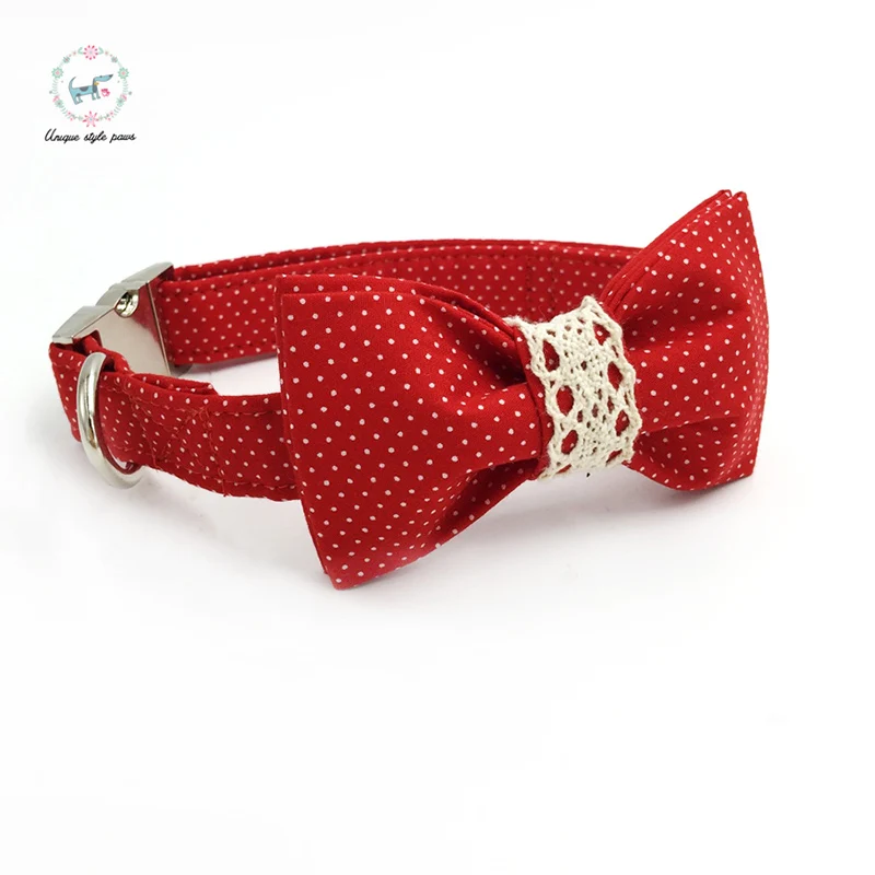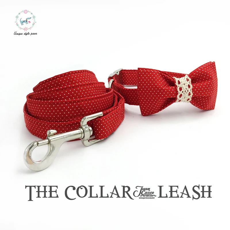 Ошейник и поводок для собак в красную точку с галстуком-бабочкой, мягкий Регулируемый хлопковый ошейник для щенков, для маленьких, средних и больших собак