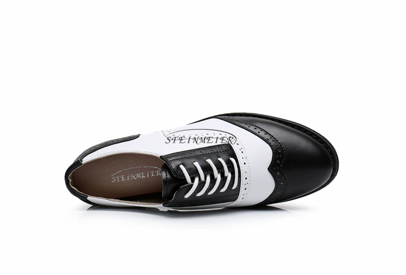 Женские туфли-оксфорды из натуральной кожи, черные или белые винтажные туфли на плоской подошве ручной работы в британском стиле, большие размеры 11, 2022