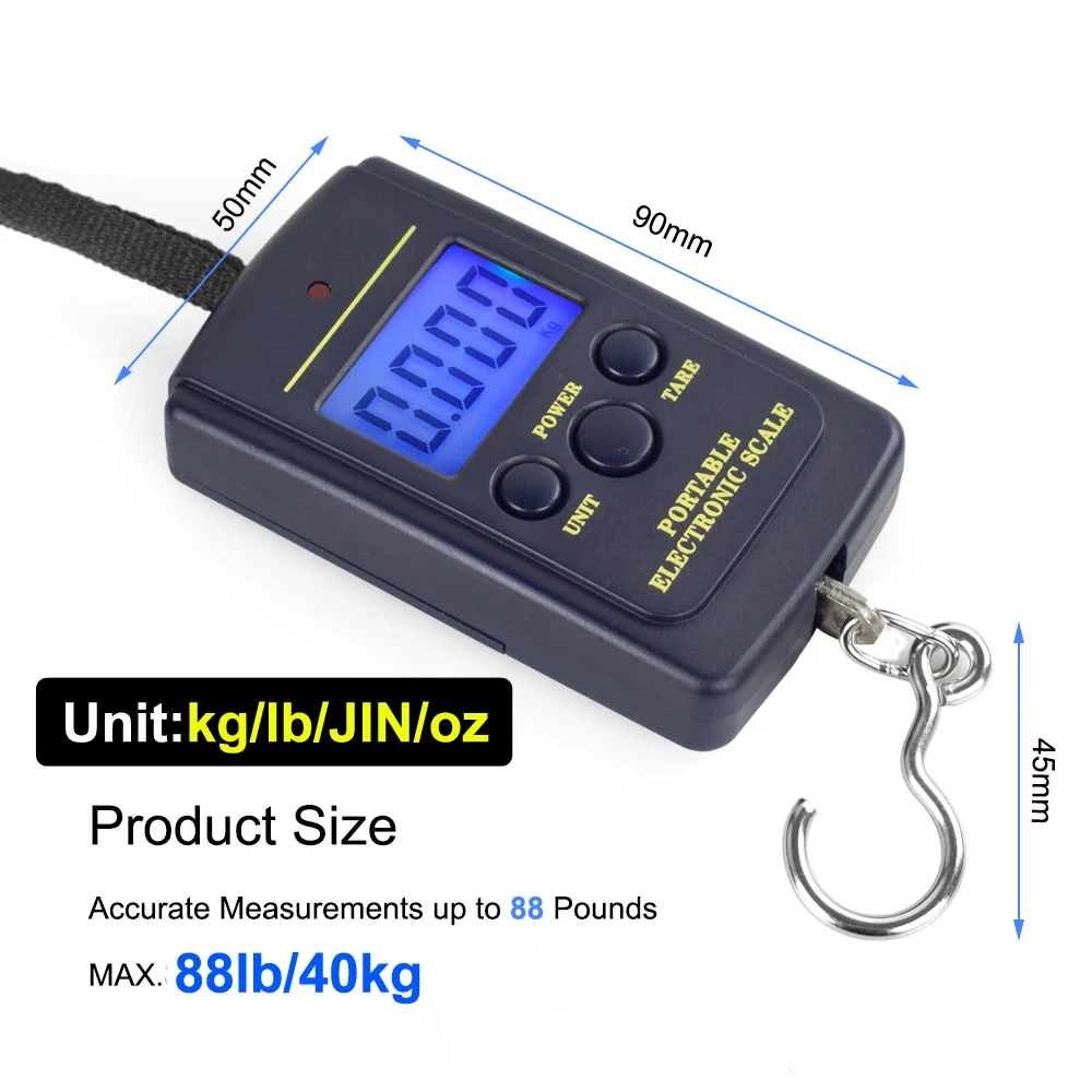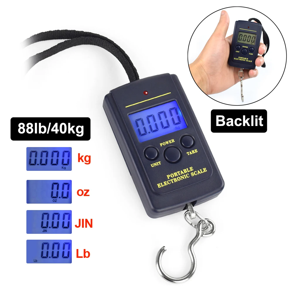 Портативные цифровые мини-весы для рыбалки, 40 кг88 фунтов