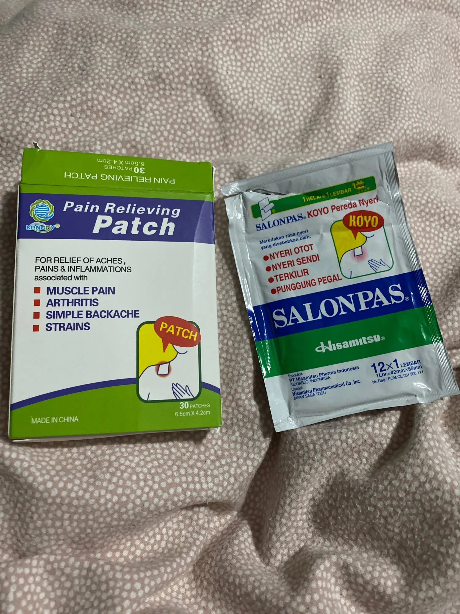 Я хотел купить salonpas. Ингредиенты выглядят так же, но это просто плохой экземпляр. Запах от настоящих салонов намного сильнее. Тот, который я купил здесь, не имеет правильного запаха и имеет запах алкоголя или изопропилового спирта. Также он запечатан вручную. Не фабрика. Не покупайте... Изображение, где мои точки пальцев-это подделка. Настоящий товар справа.