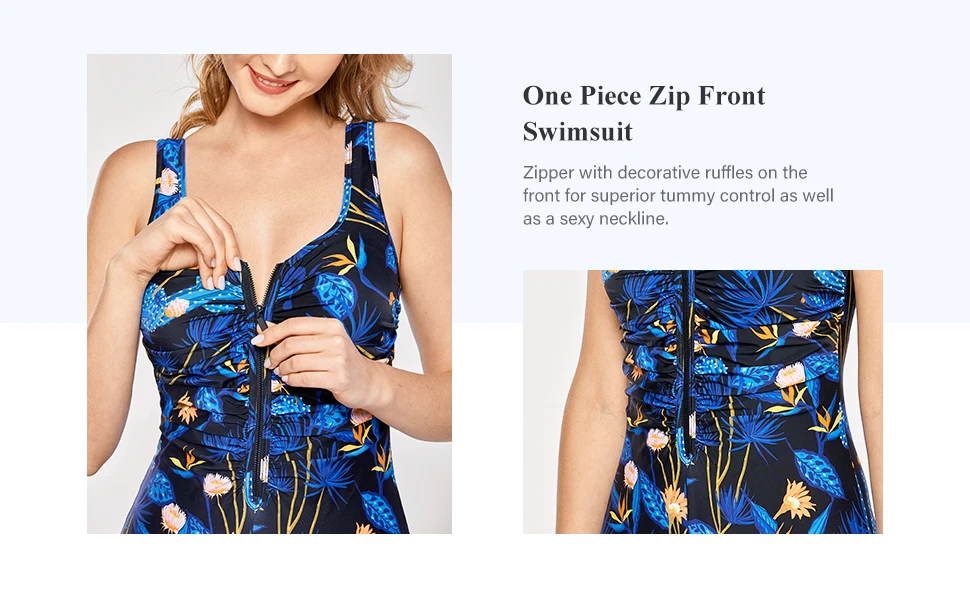 Женские размера плюс купальники со встроенной чашкой, Цельный купальник с молнией спереди