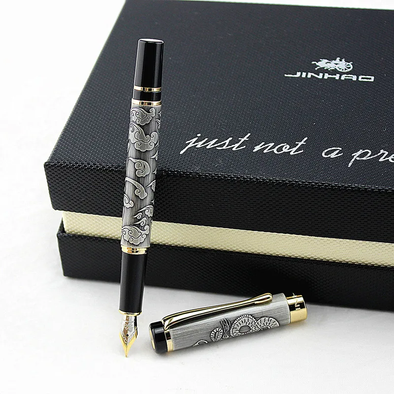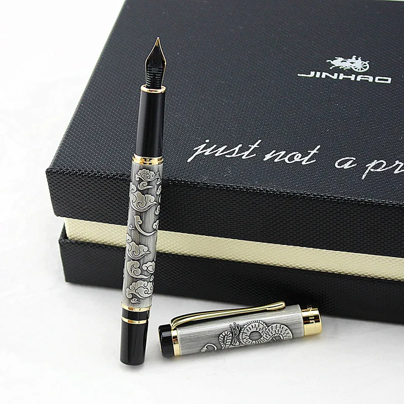 Перьевая ручка Jinhao с резьбой по дракону и фениксу, роскошный мет...