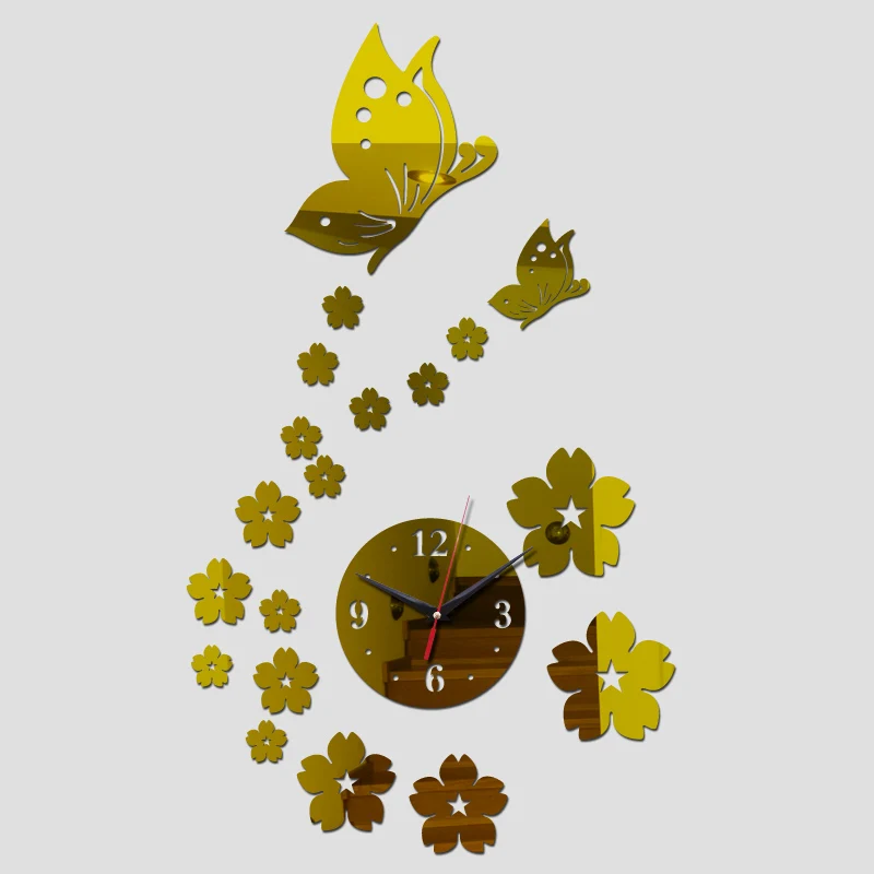 Новые модные настенные часы с циферблатом в форме бабочки, зеркальн...