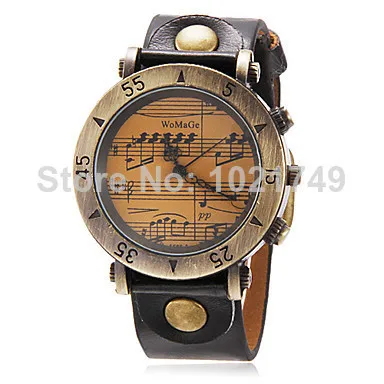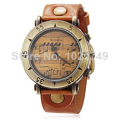 Модный бренд Ретро стиль Уникальный дизайн Музыкальный персонал для мужчин и женщин винтажные часы PU Кожаный ремешок военные кварцевые подарочные часы