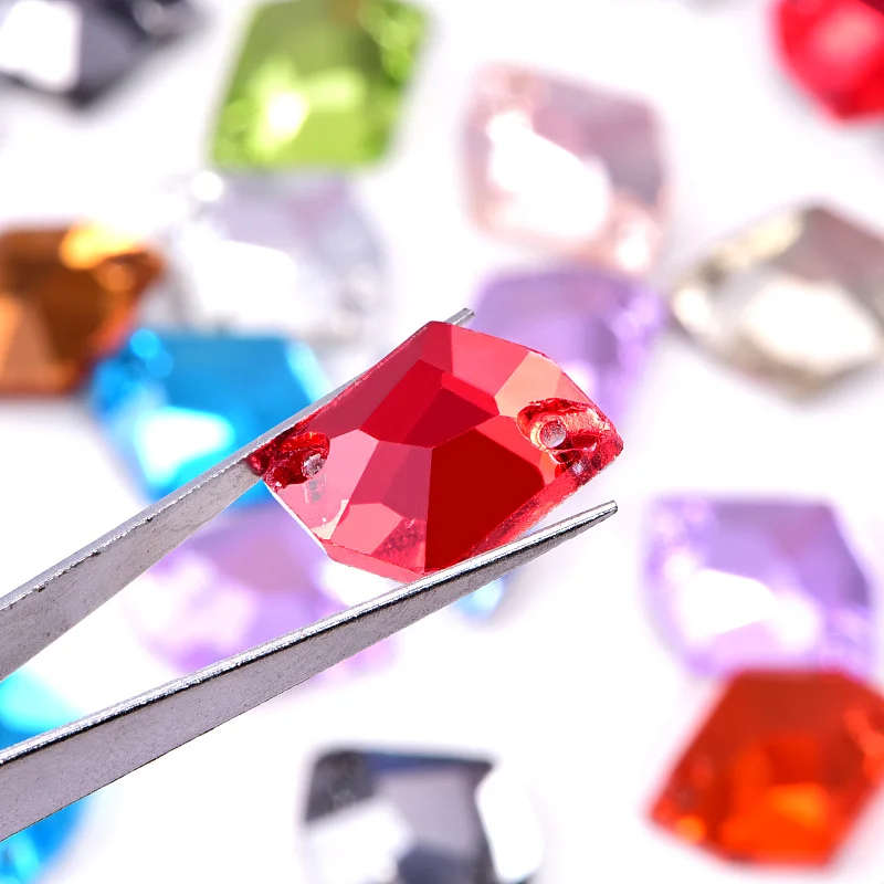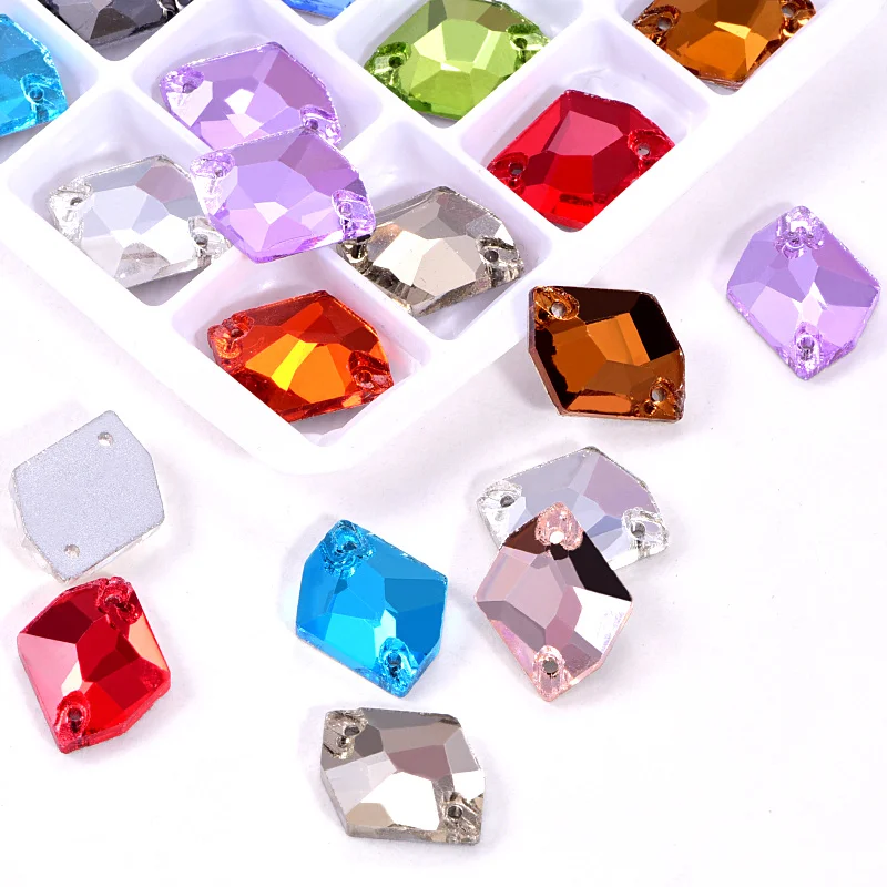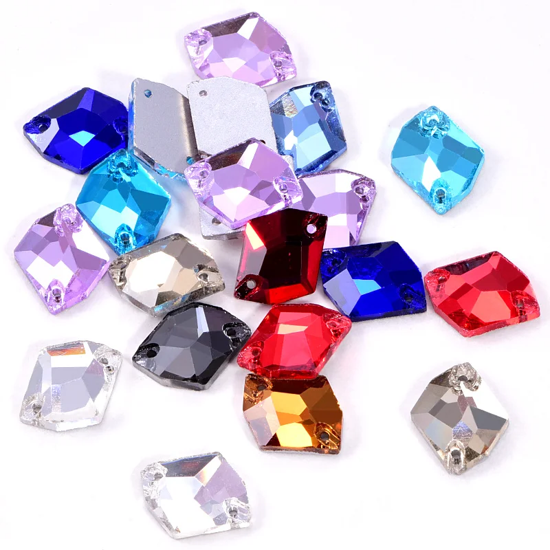 Стеклянные стразы космической формы смешанных цветов, 5 размеров, прозрачные стразы с плоской задней стороной для шитья с 2 отверстиями для одежды B0681