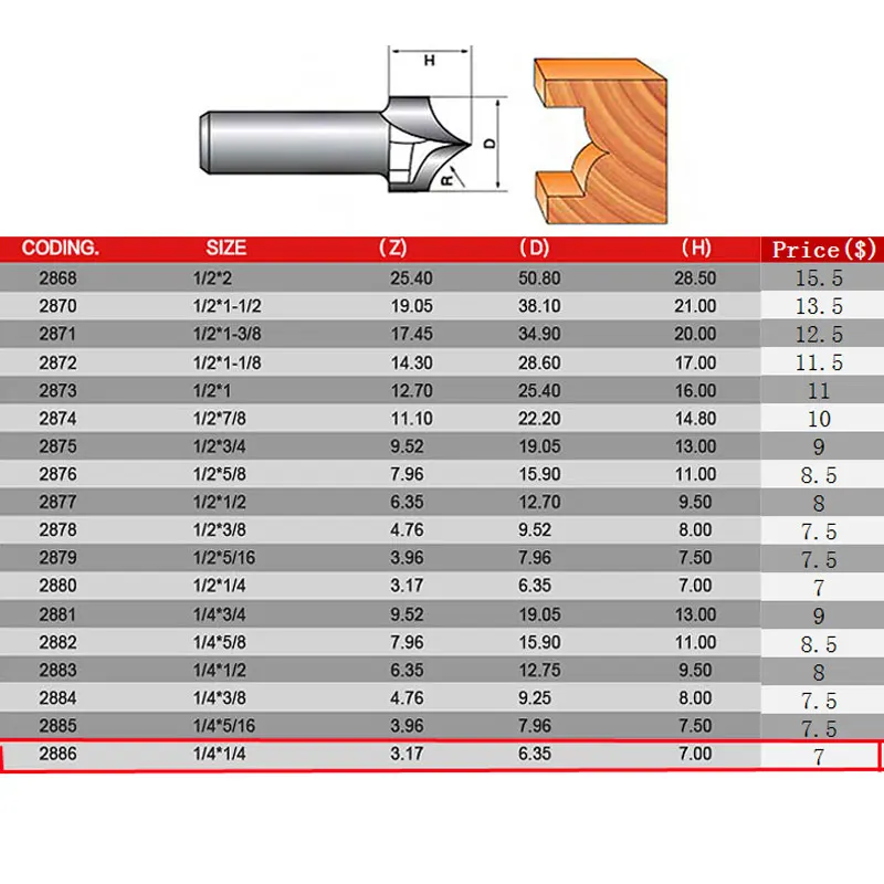 Точечная круглая канавка 14*14 деревообрабатывающий инструмент игольчатые носорезы деревообрабатывающие Фрезы с ЧПУ от производителя Tideway 2886
