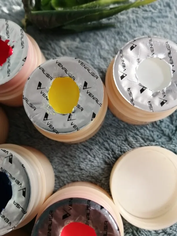 Доставка долгая без отслеживания. Баночки целые, очень плотно укупорены фольгой, наполняемость по плечики. По качеству самой краски: для стемпинга не подходит, мало пигмента, для рисования (для росписи) отлично пойдёт, для вензелей и френча не очень. Густота хорошая а пигмента маловато