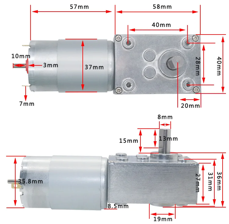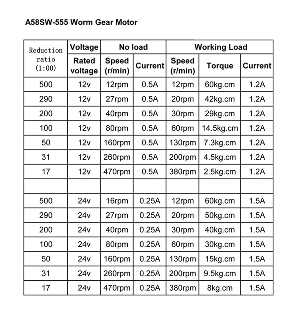 Мотор-редуктор с высоким крутящим моментом, 6- 24 В, A58SW-555, 12 В, Реверсивный, 12-470 обмин