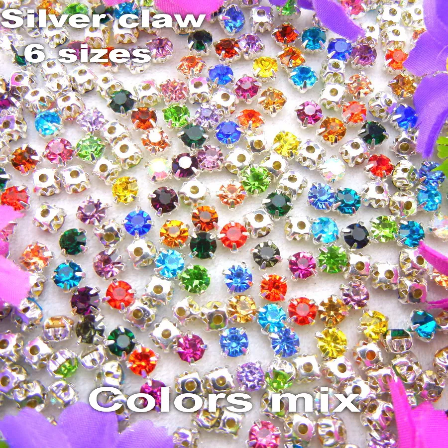 6 размеров, разные цвета, стеклянные Хрустальные Бусины, серебряный коготь