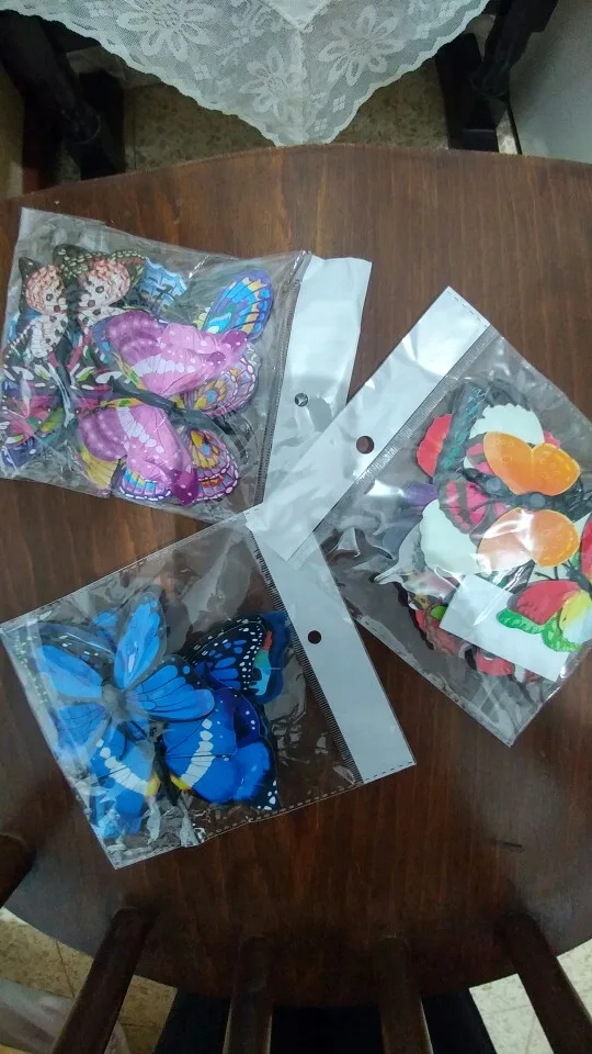 Мне нравятся. Крылья изготовлены из пластика (устойчивы), а летучая бабочка поставляется с небольшой магнитной частью некоторых наклеек, так что вы можете приклеить их куда угодно. Настоятельно рекомендуется. Доставка займет несколько недель.