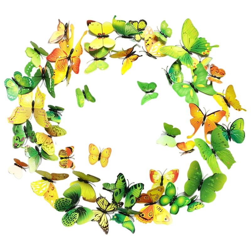 Бесплатная доставка 12 шт. ПВХ 3D бабочка Настенный декор милые бабочки настенные наклейки художественная наклейка украшение дома комнатные настенные художественные обои