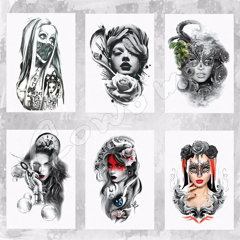 Новая простая классная Татуировка девушка с маской 21x15 см Водонепроницаемая временная татуировкаРазмер игрушки: 21x15 см