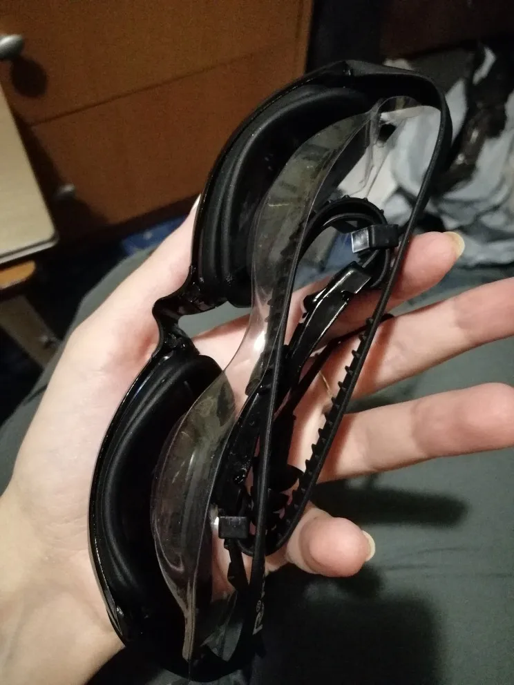 очки шли 2,5 месяца. Я заказывал их на отпуск с учётом 37 дневную доставку. В итоге пришлось ехать в отпуск без очков. По приезду с отпуска и ещё 15 дневным ожиданием я их получил. Упакованы отвратительно, просто в целофановый пакетик. Задняя застёжка очень сильно поцарапана (как будто напильником прошлись). На левой стороне так-же большие потёртости и испорчена резинка.