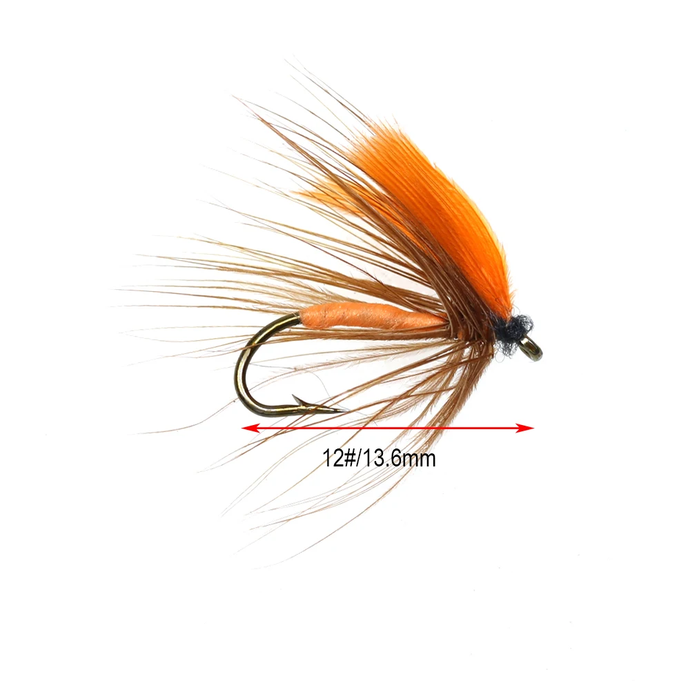 ICERIO 6 шт оранжевые крылья Quil влажные мухи приманки на форель для ловли нахлыстом #12