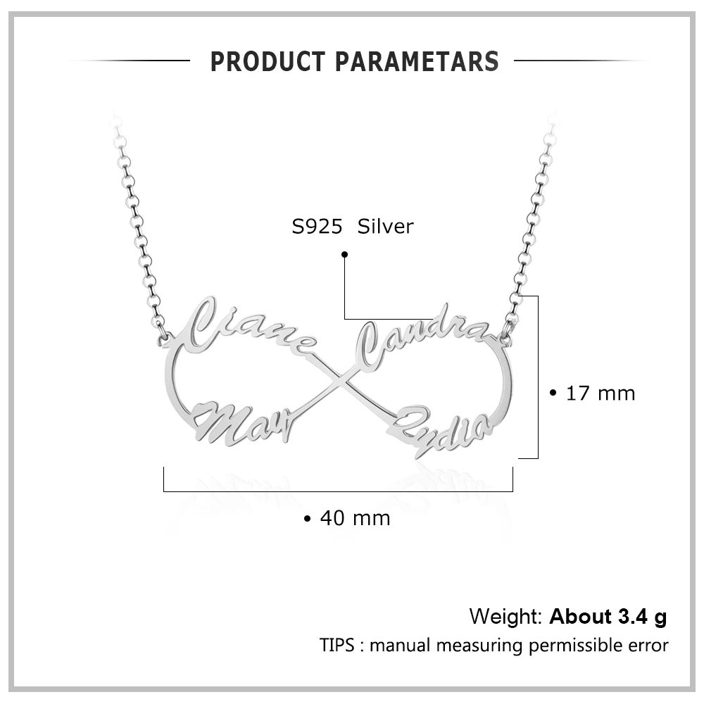 Персонализированные Имя Ожерелье Настоить на Заказ Кулон Бесконечность Бесконечная Любовь 925 Стерлингового Серебра Ожерелья Подвески подарок годовщины(JewelOra NE101367)