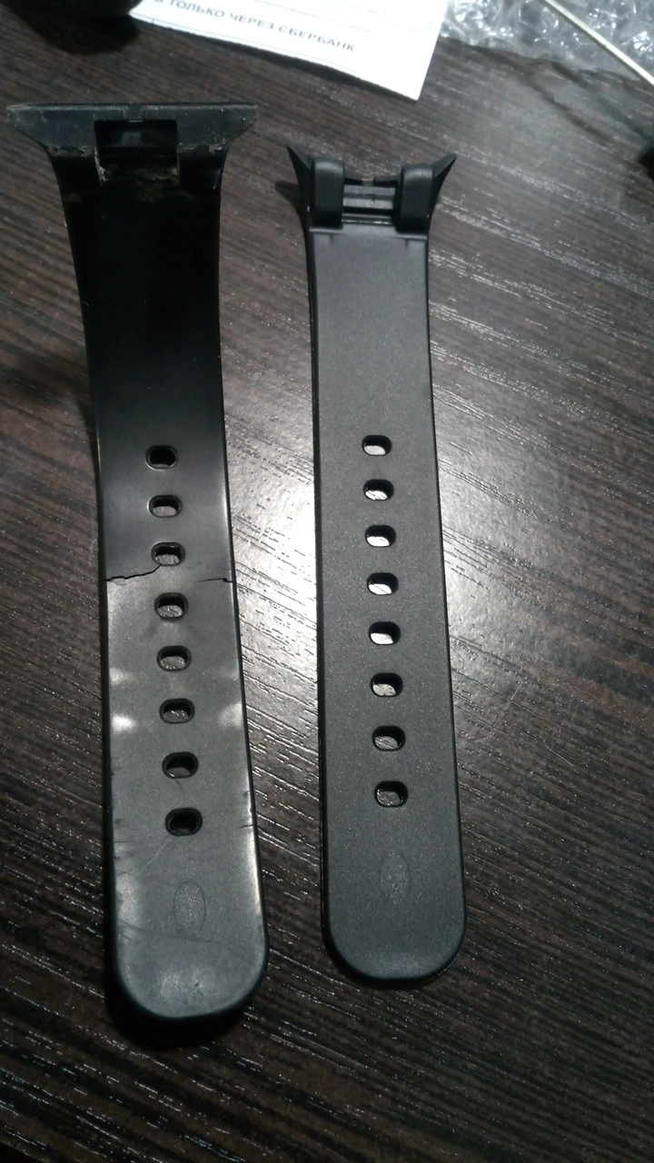ремешок доставлен очень быстро, меняю ремешок уже второй раз, предыдущие ремешки полопались и порвались через 1,5 года использования.