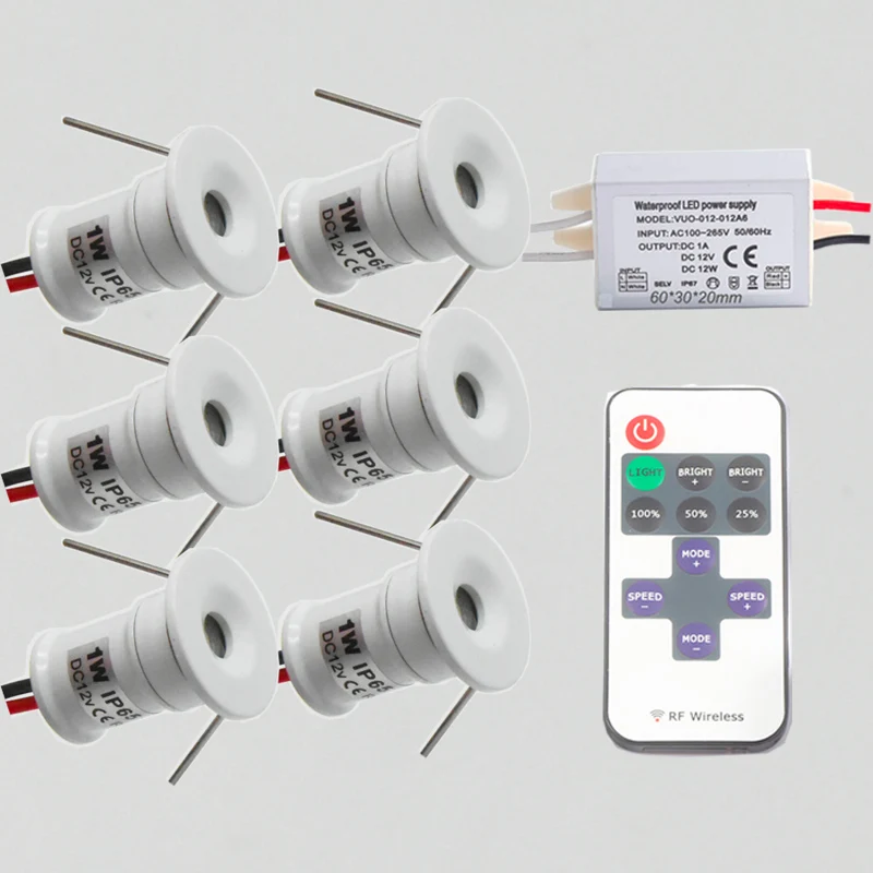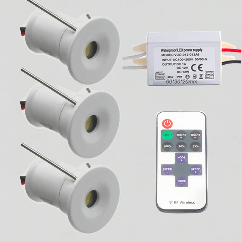 Радиочастотный пульт дистанционного управления + драйвер с регулируемой яркостью 1 Вт 100 лм 12 В 15 мм Мини светодиодный прожектор CE RoHS Рождество IP65 лестничный шкаф
