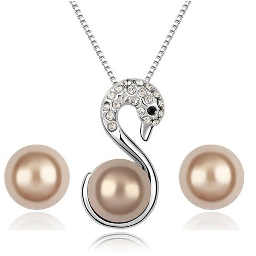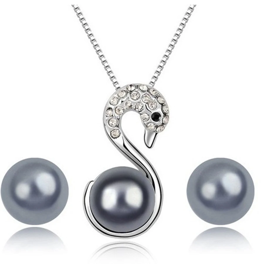 Посеребренное 10 мм Ожерелье из натурального искусственного жемчуга ожерелье кулон ювелирные изделия оптом + красивый Лебедь
