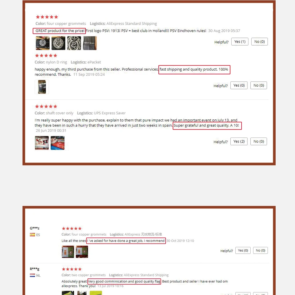 Очень хорошее качество, впечатляющий сервис, 19 дней от оплаты до получения флага во Франции .. Я буду заказывать больше