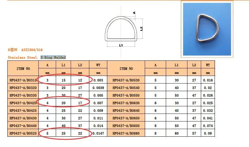 6 шт., сварное D-образное кольцо из нержавеющей стали марки AISI 31...