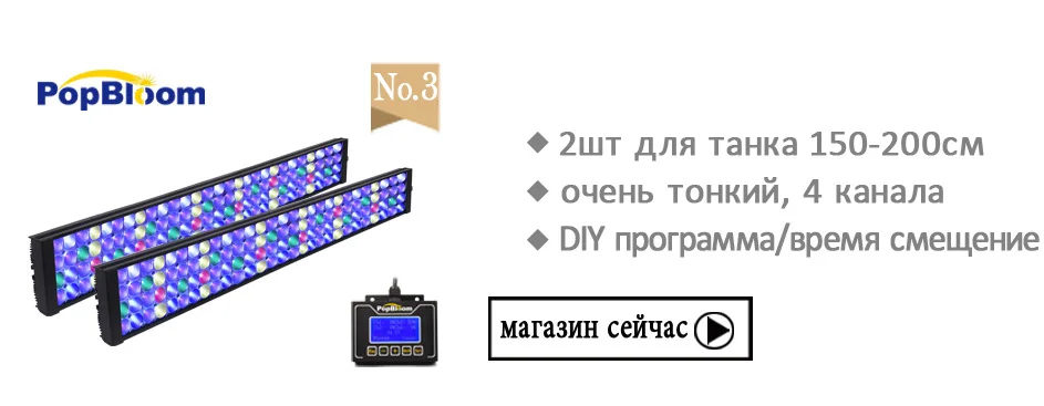 Светодиодный светильник для аквариума PopBloom, светильник для аквариума, лампа для выращивания в морском аквариуме Освещение для выращивания коралловых рифов для морского аквариума 90 см 36 дюймов Turing75