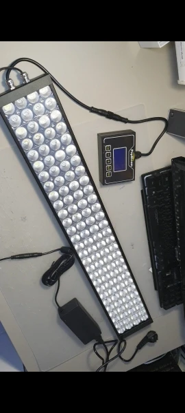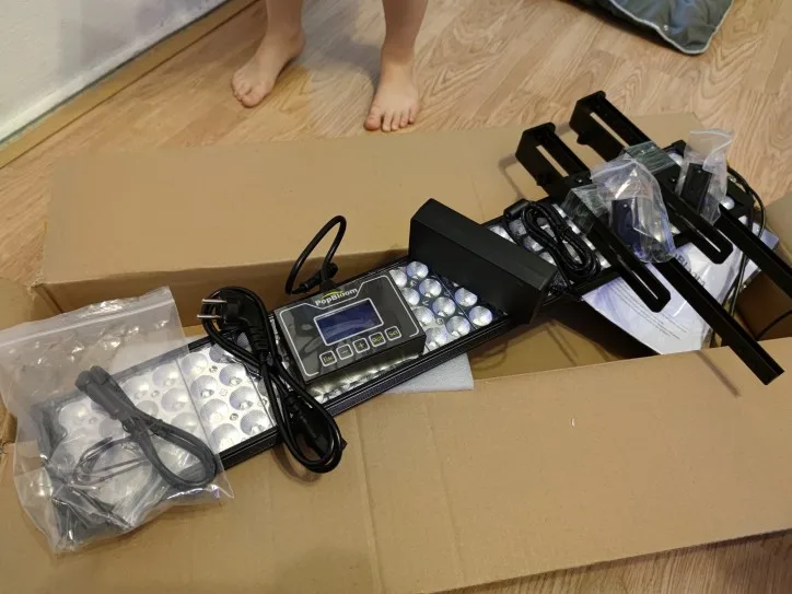 отличный свет. своих денег однозначно стоит. есть много разных мнений по данному светильнику, но мое такое - это идеальный свет для выращивания мягкоты, лпс и простых спс. свет приехал в коробке, запечатно все на высшем уровне. все в пленочках и уплотнительном материале. вобщем светом очень доволен, но мне нужен еще один такой же. не хватило на все ширину аквариума. в скором времени дополню отзыв и сниму видео про данный свет.