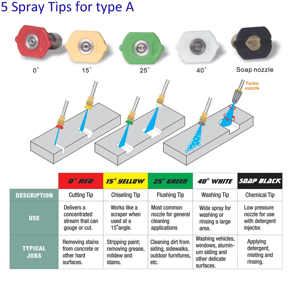 1 Набор насадок из нержавеющей стали (5 шт.-красный 0 °, желтый 15 °, зеленый 25 °, белый 40 °, черная мыльная насадка), #035