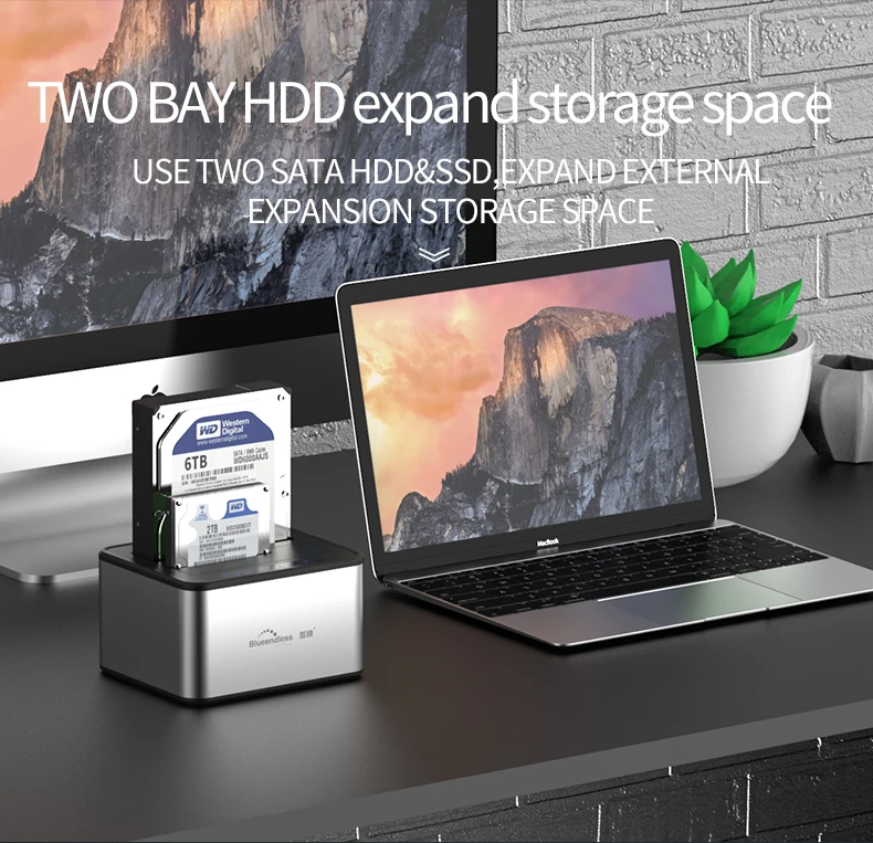 Bluedless HD05 SATA док-станция поддерживает прямая вставка для рабочего стола, два 2,5 "/3,5" жесткого диска SATA. Это бескорпусное решение, которое делает обмен жесткими дисками проще, чем когда-либо прежде. Кроме того, теперь вы можете воспользоваться скоростью освещения USB 3,0 для быстрой передачи файлов до 5 Гбит/с! Подключите любой 2,5 "/3,5" Serial ATA (SATA) или SATA II жесткий диск к компьютеру через доступный порт USB 3,0 на вашем рабочем столе илиНоутбук.Функция дубликатора жесткого диска