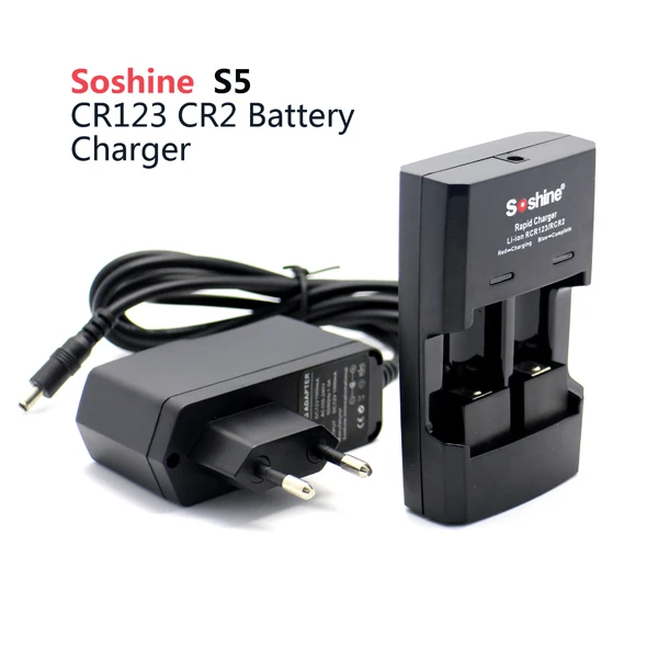 Зарядное устройство для литиевых батарей Soshine S5, 2 слота, CR2 CR123A 16340 17355, входное напряжение 100 240 В переменного тока, 5060 Гц, 12 В постоянного тока