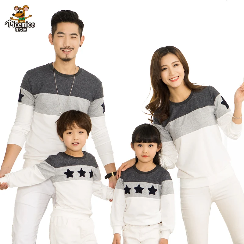 Семейный комплект 2017 г. модная хлопчатобумажная одежда для папы мамы и малыша одежда для всей семьи одинаковые комплекты для семьи с рисунками-звездами