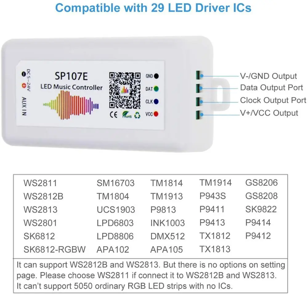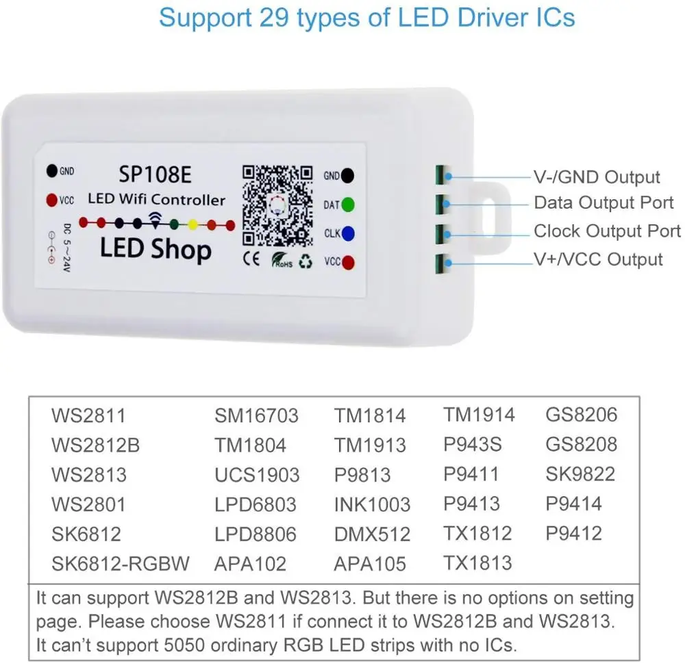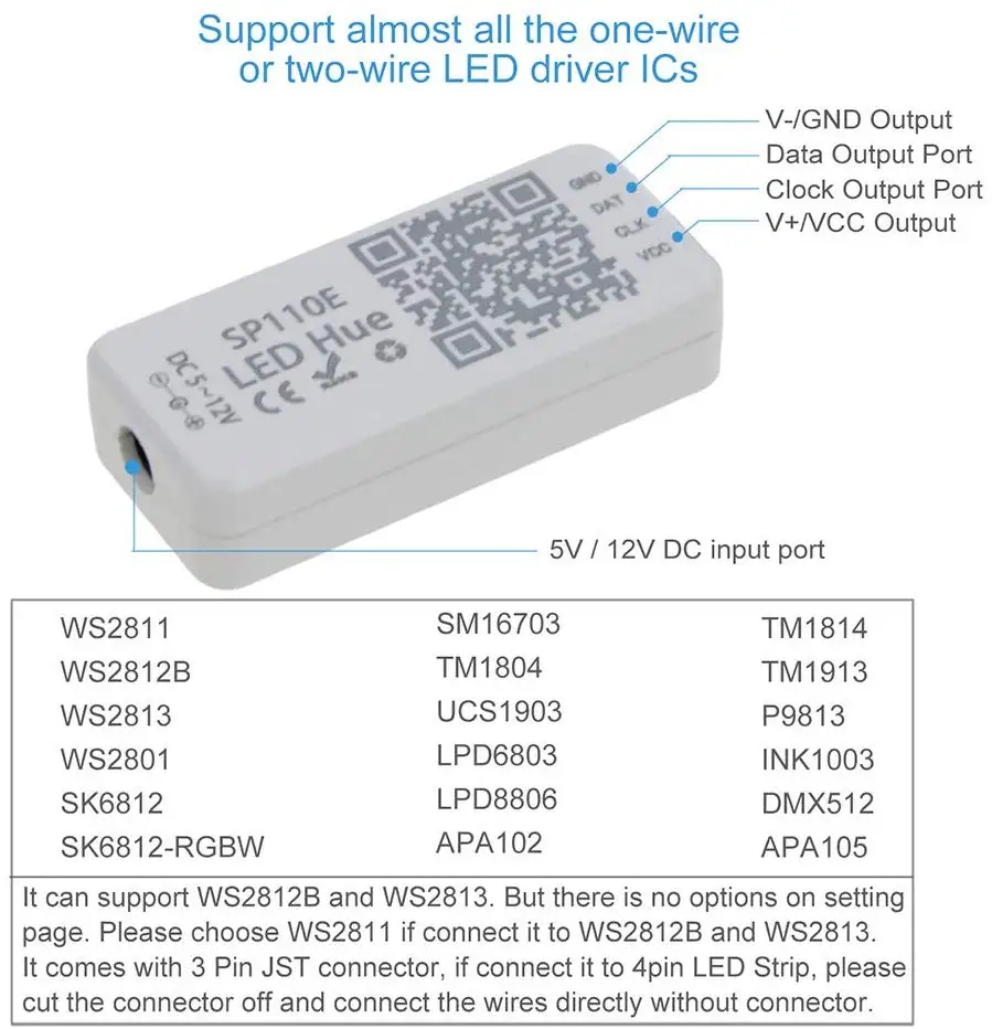 Музыкальный контроллер SP108E107-e105E110E SPI, Wi-Fi, Bluetooth, pixel IC, приложение для смартфона, для WS2812B WS2813 SK6812, Полоска, DC5-12V