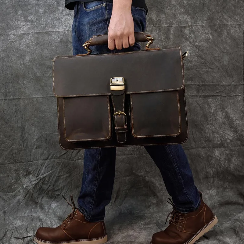 Мужской портфель из натуральной кожи, винтажная деловая сумка из воловьей кожи, 15 дюймов, сумка для ноутбука, сумка-мессенджер для работы, прочная сумка для компьютера