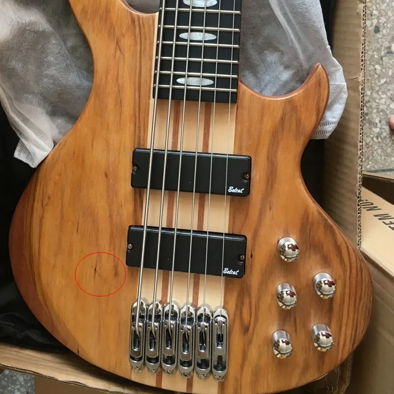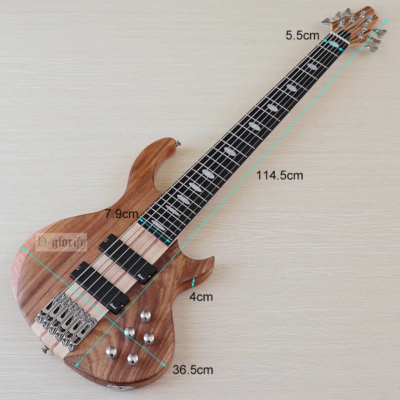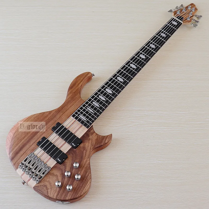 Профессиональная 6-струнная электрическая бас-гитара с грифом из твердого дерева на окуме, матовая, 43 дюйма, бас-гитара, активная гитара