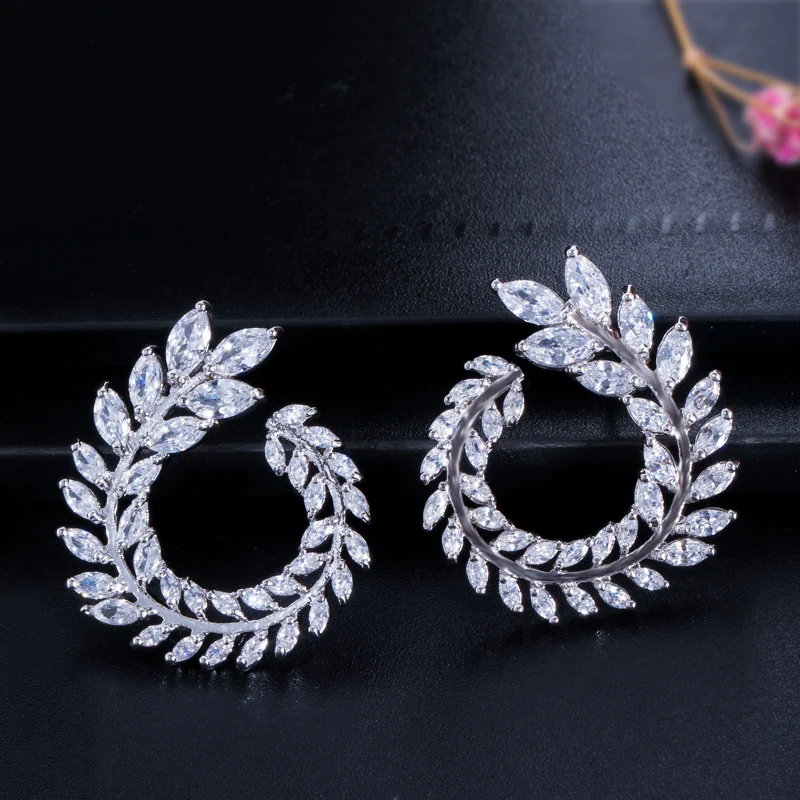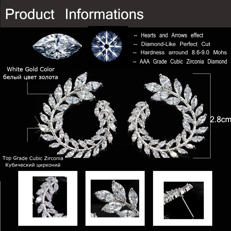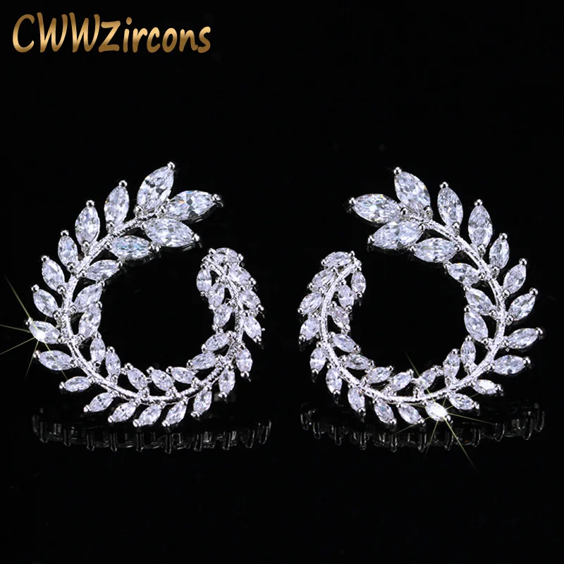 CWWZircons блестящая лист оливковой ветви форма огранка маркиза большой серьги с цирконием кубической огранки для женщин модные брендовые ювелирные изделия CZ363