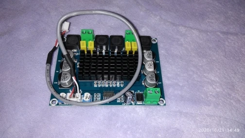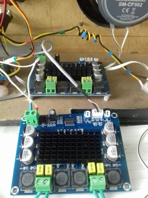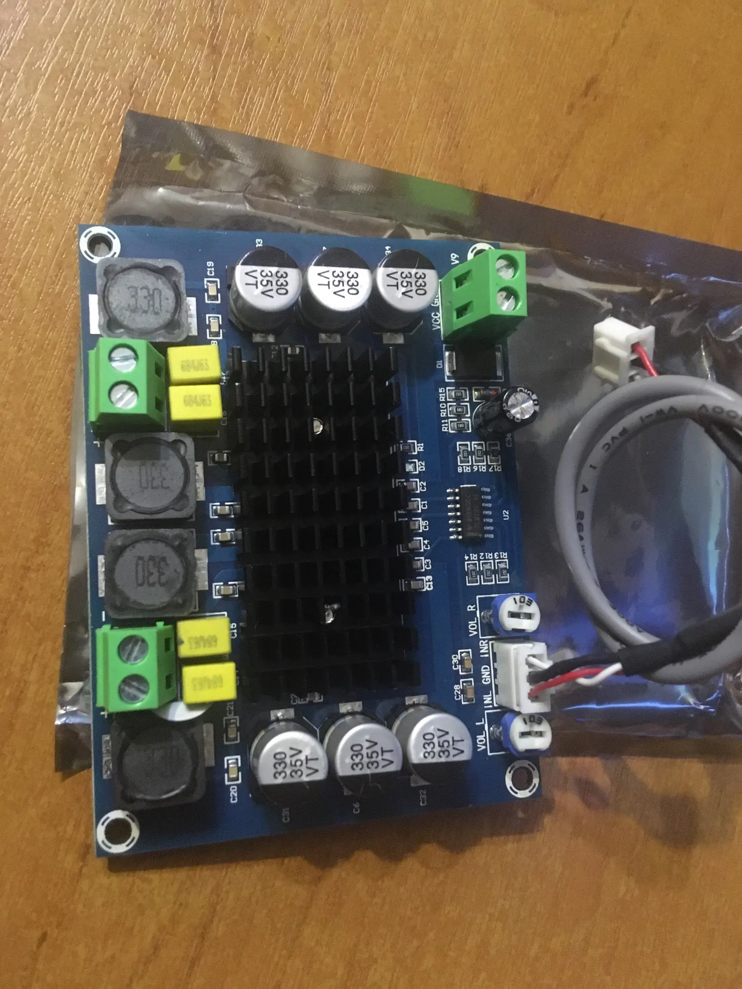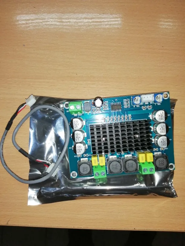 Усилитель исправен, доставка быстрая. Две звезды за описание товара я снял за то, что на фотографиях на страничке товара на входе усилка установлены электролиты. На деле там запаяна керамика, опять китайцы съэкономили.. Придется заменять. При включении и выключении усилитель хлопает динашами. Вход усилка советую зашунтировать низкоомными резисторами, иначе аццки фонит. И нанесите термопроводящую смазку на микросхему.