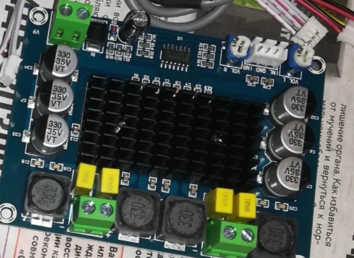 Нормальный усилитель. Из блока радио/блютуз/aux , темброблока и этого усилителя собрал саундбар на дачу. Уменьшите усиление предварительного каскада вдвое, но белый шум есть, примерно с метра слышно. Автоовалы урал молот в паре с какими то твиттерами раскачивает до перегрузки примерно на половине мощности. Верха только "цифровые", но что ждать от класса д. И щелчки при выключении-, нужно дополнить блоком защиты динамиков.